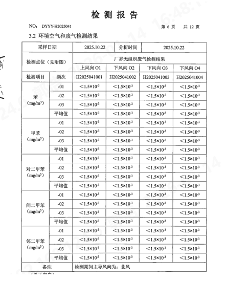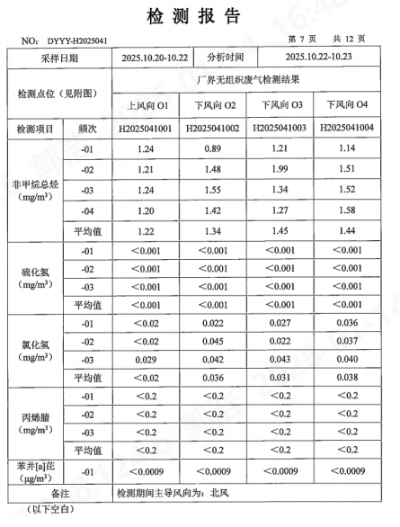 2025年第四季度无组织废气委托监测结果见下表: