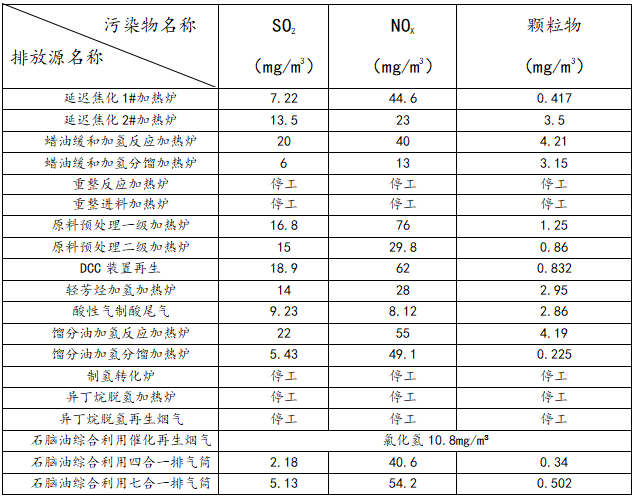 2、除160万吨/年DCC生产烯烃装置再生烟气、6万吨/年炼厂酸性气制酸吸收尾气经烟气治理设施处理后排放外,其余各装置加热炉以脱硫干气为燃料,脱硫干气为清洁能源,其燃烧后产生的废气均满足现行标准《区域性大气污染物综合排放标准》(DB37/2376-2019)表1重点控制区标准。各排放源废气中各项污染物指标委托监测情况如下: