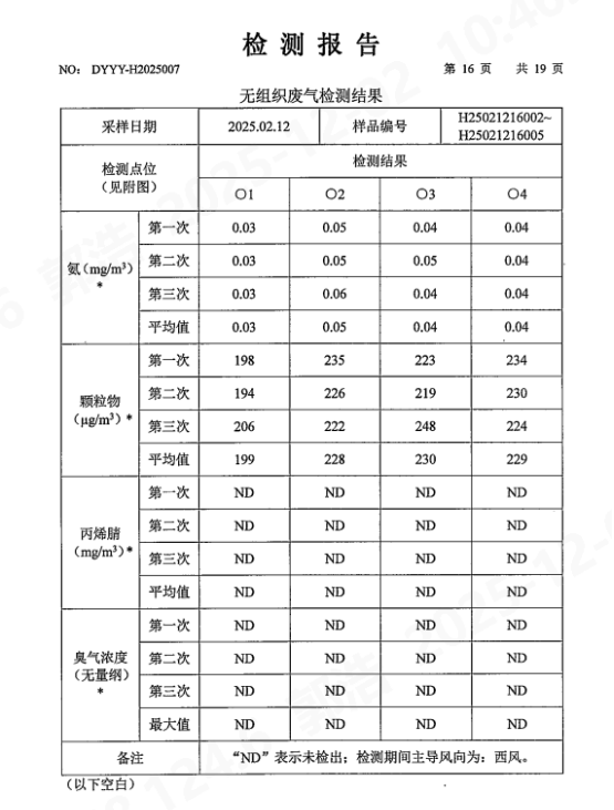 六、2025年第一季度委托监测报告、2025年1月1日-3月31日在线监测数据时均值(见上传资料)。